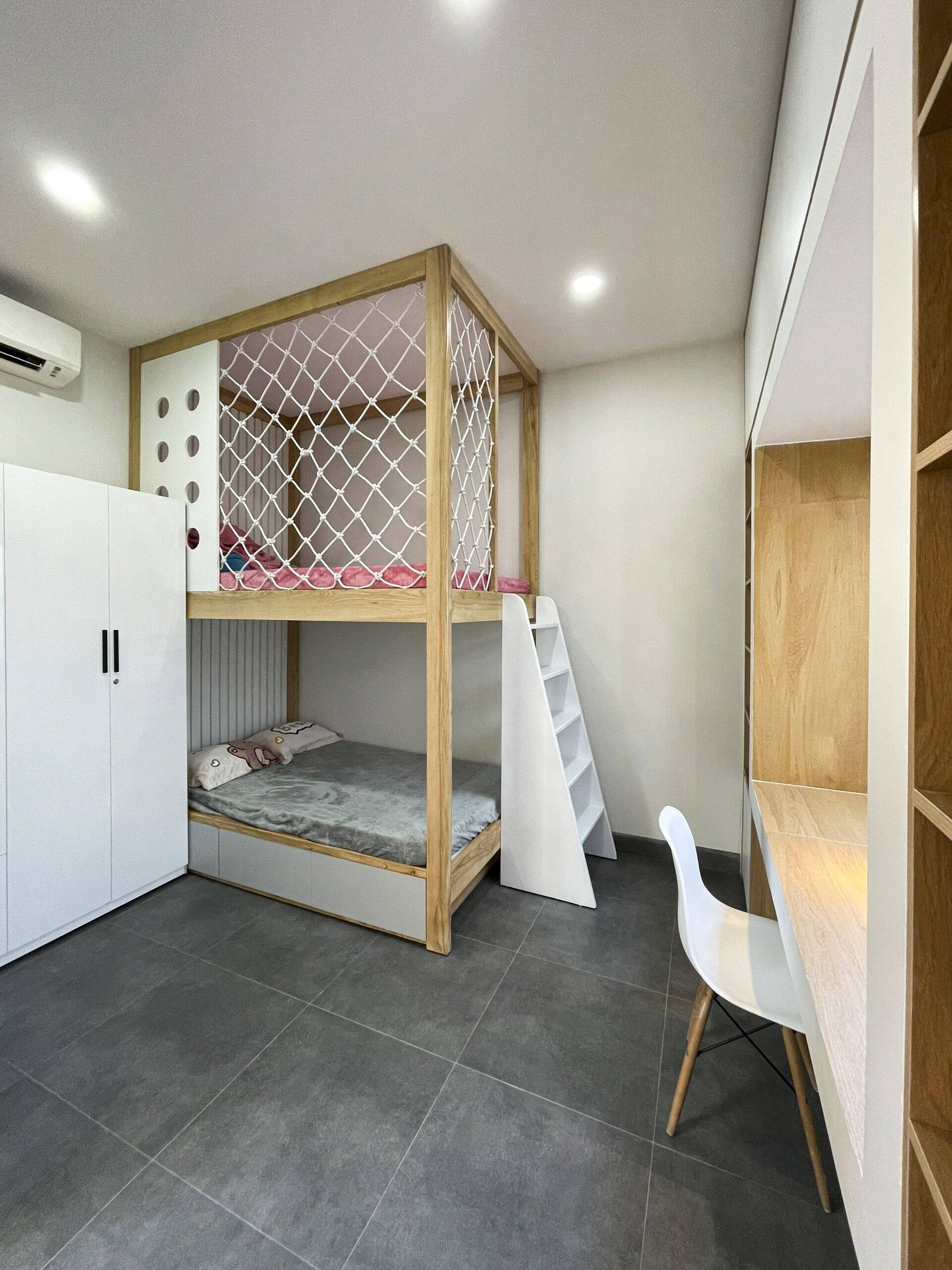 Với nhà cấp 4, phòng ngủ của trẻ nhỏ có thể dùng giường tầng để các bé có nhiều không gian vui chơi (Ảnh: Hằng House)